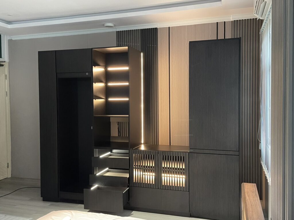 背面収納(ブルム金具仕様でサーボモータによる自動開閉を導入)→
